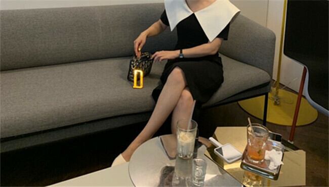オードリーヘップバーンを思わせる、女優ワンピース。大きめ襟がポイントになって、上品なイメージをつくってくれます。